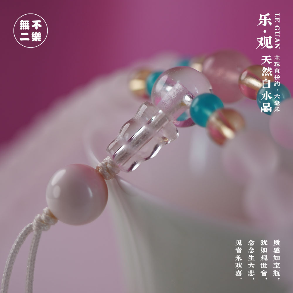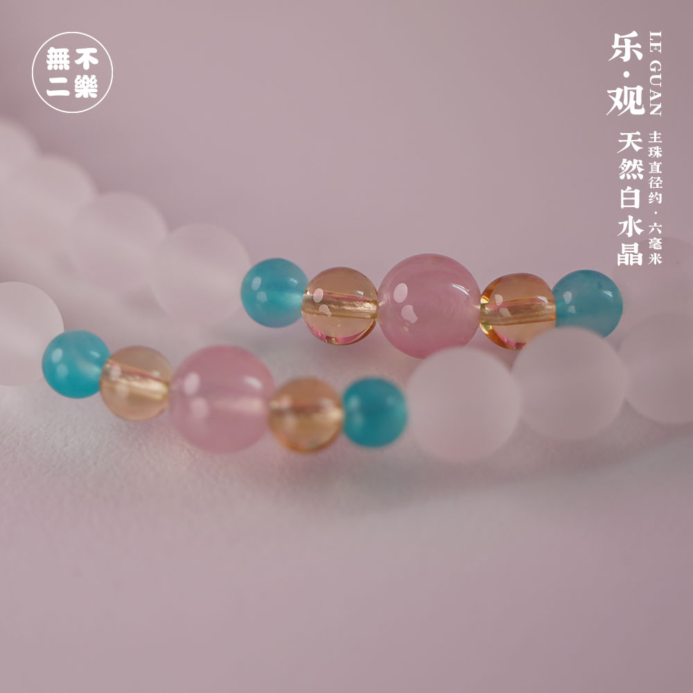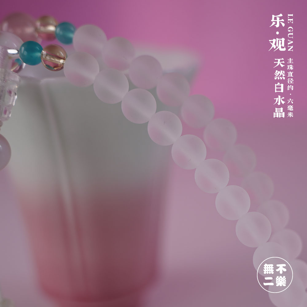 孤品 · 一物一图 · <乐 · 观> 天然磨砂白水晶 · 主珠直径约 · 六毫米